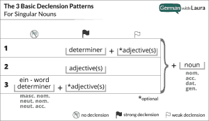 - which case it’s in (nominative, accusative, dative, or genitive)